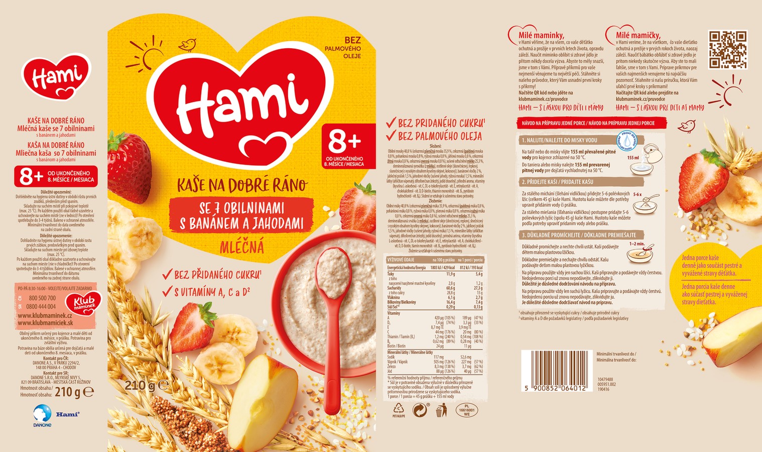 Hami kaše jsou vyrobeny z pečlivě kontrolovaných obilovin, které jsou přirozeným zdrojem energie. Také obsahují potřebné vitamíny a minerální látky. Navíc Hami kaše skvěle chutnají a dobře se rozpouští!