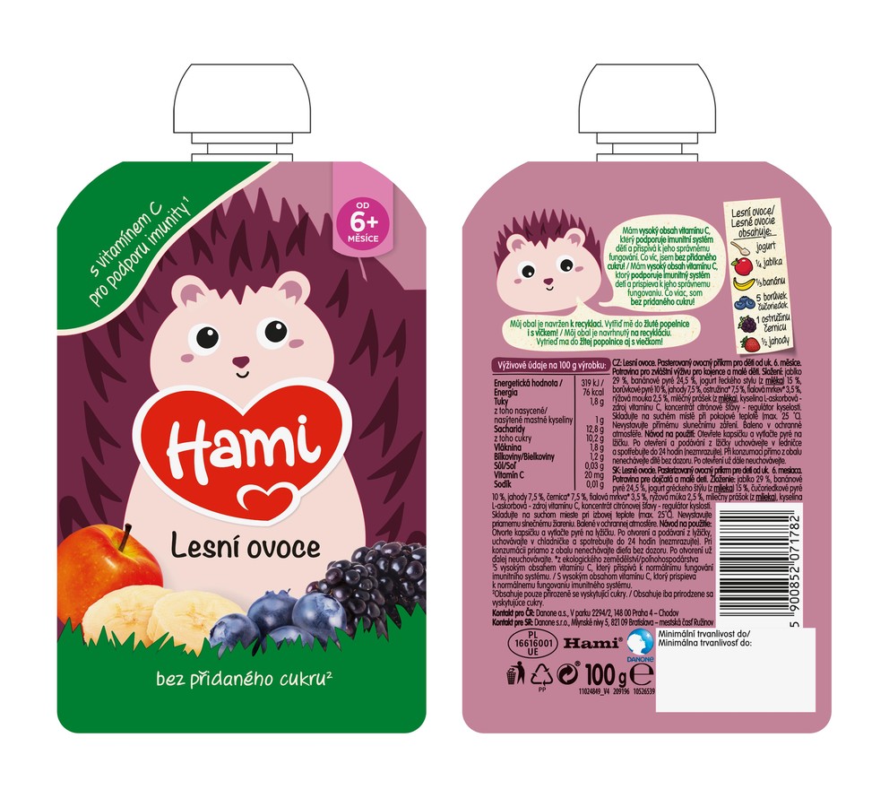 Hami kapsička smoothie lesní ovoce má vysoký obsah vitamínu C, který podporuje imunitní systém dětí a přispívá k jeho správnému fungování. Je vyrobená z pečlivě vybraného ovoce, které je sbíráno v optimální době zralosti. Obsahuje pouze přirozeně se vyskytující cukry a je v obalu navrženém k recyklaci. Snadno jej vytřídíte do žluté popelnice i s víčkem.