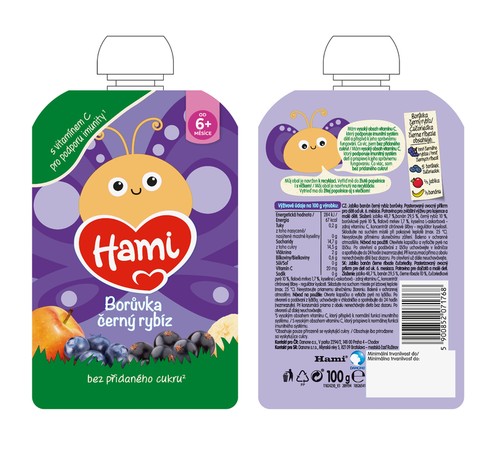 Hami kapsička jablko banán černý rybíz borůvky